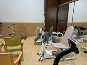 利用者さんは変わらず、機械トレーニングや個別リハビリにしっかり取り組まれています。